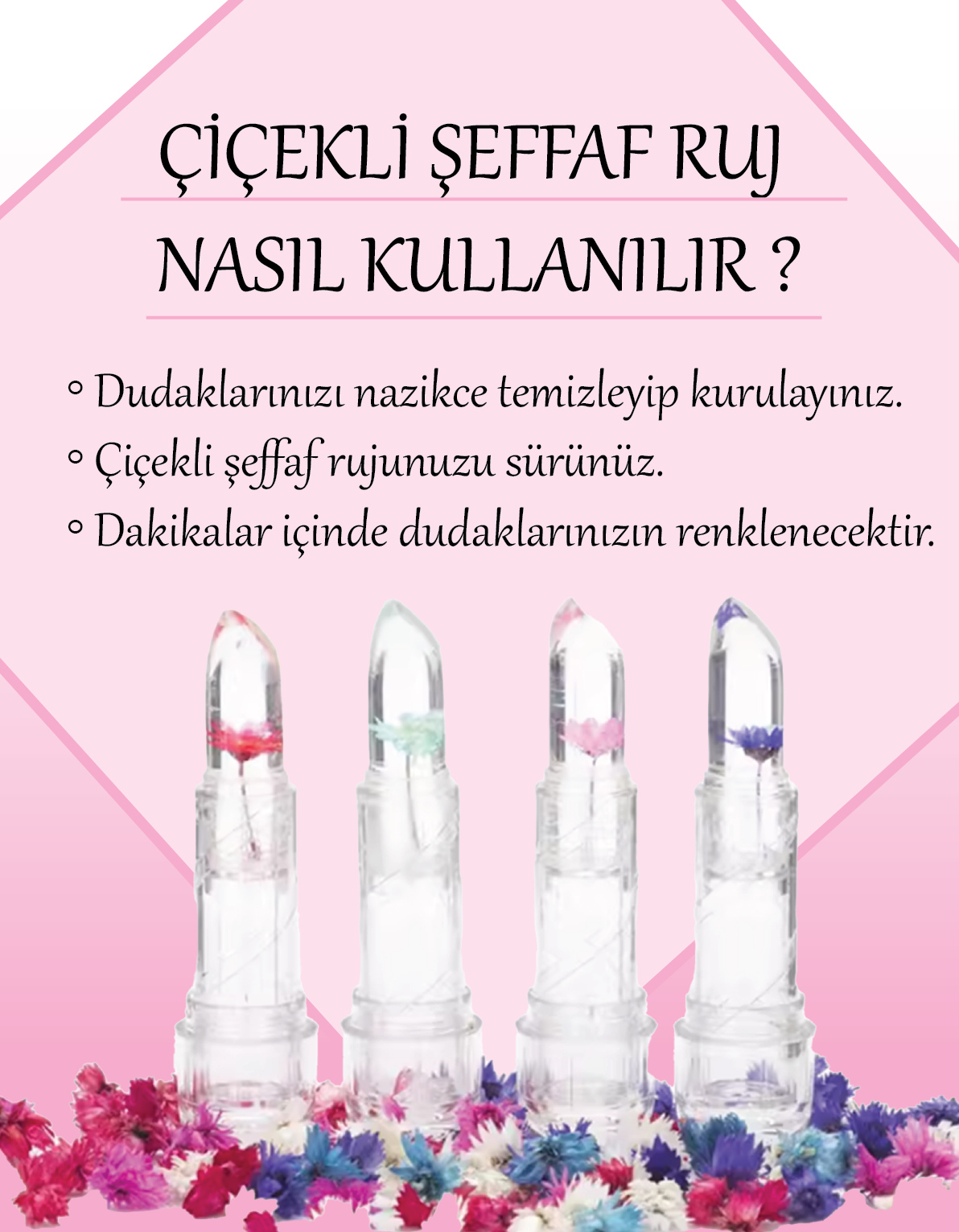 1 Adet ÇİÇEKLİ ŞEFFAF RUJ -